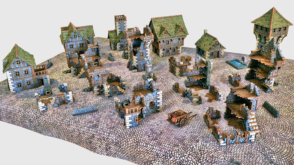 28mm 3D Printed Destroyed Medieval Village Ruined Terrain for Wargames & RPGs